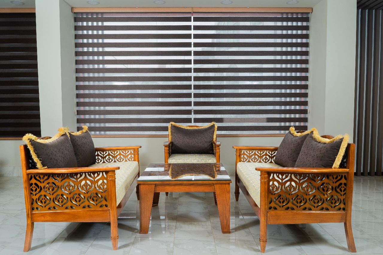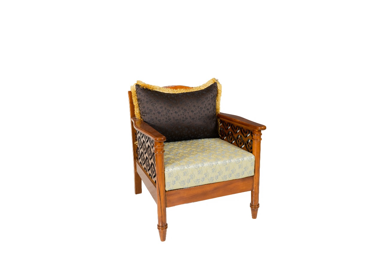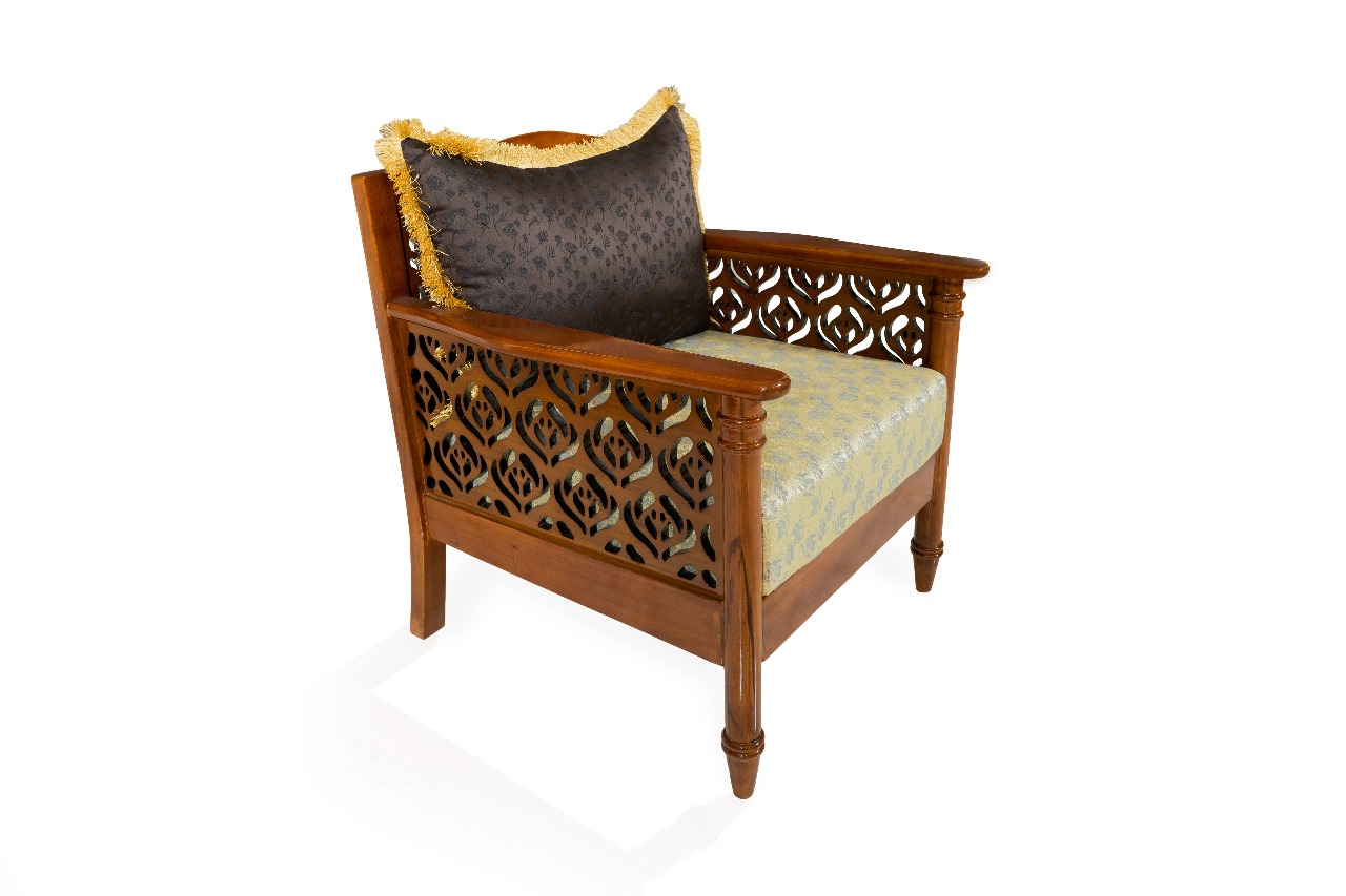 Structure Made with Solid Mahogany wood Beech Veneer Process wood Imported Fabric & Semi Rubber Foam and 1″ Super soft